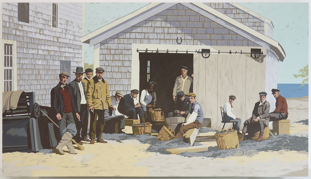 Provincetown es el enclave principal y el eje conceptual que articula la mayoría de las obras que componen la muestra. Por su pequeño tamaño, es posible que este enclave costero no resulte familiar al espectador. Situado en el extremo de Cape Cod – una larga península que se adentra en el Atlántico desde la costa de Nueva Inglaterra-, Provincetown está vinculado a los orígenes de Benedict, cuya ascendencia proviene de esa región. Sin embargo, en la propia historia y el imaginario colectivo estadounidense, Provincestown ocupa, -como veremos- un lugar destacado. En la actualidad es célebre no solo por su pasado como pueblo pesquero y colonia artística, sino también porque encarna un cruce de tiempos y significados. Durante el siglo XIX empezó a atraer a pintores y escritores y se convirtió en la colonia artística más antigua de América. Ya en el siglo XX, acogió a dramaturgos y actores y está considerada la cuna del teatro moderno estadounidense. Actualmente, su principal industria es el turismo y es también, un referente para las personas LGBTQ+ de todo el mundo, que encuentran aquí un espacio de belleza natural y de libertad social.