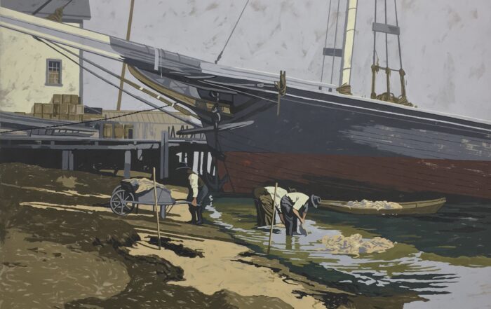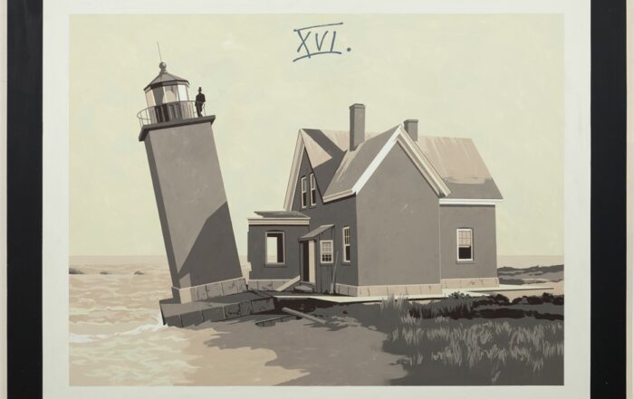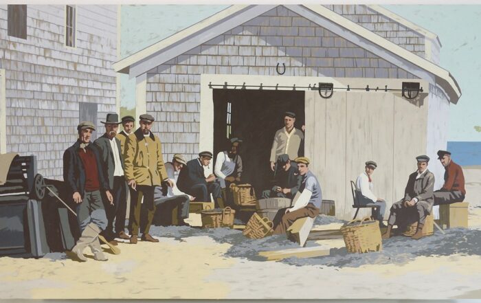 Provincetown is both the main setting and the conceptual axis that structures most of the works in the exhibition. This coastal enclave may not be familiar to the viewer due to its small size. Situated at the tip of Cape Cod, a long peninsula extending into the Atlantic from the New England coast, Provincetown is closely tied to Benedict’s origins, as his ancestry is from that region.