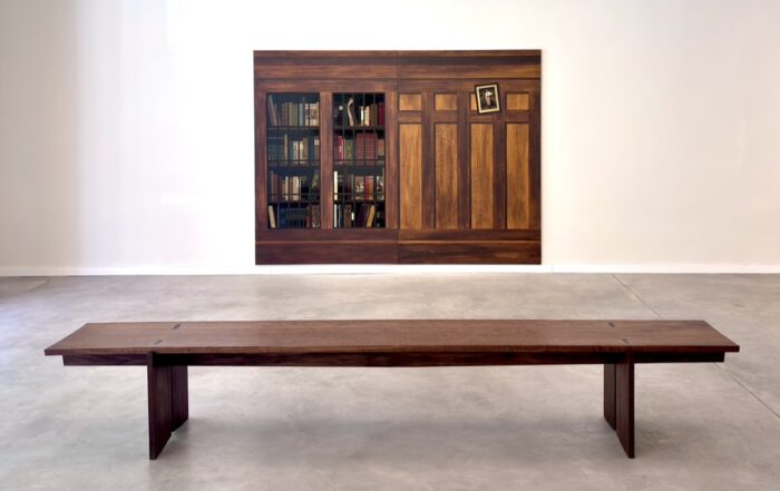 Benedict ‘writes’ with his paintings, presenting us with fragments of an incomplete story that the viewer must reconstruct. It is the narrative drive that motivates him. His graphic, deliberately flat pictorial style supports this idea, with compositions reminiscent of 19^(th)-century illustration or didactic painting. His gouache paintings on wood or paper are conceived as visual stories. In terms of documentation, Benedict works with archives, old photographs, testimonies and elements of American popular iconography, although his approach is far from purely documentary.